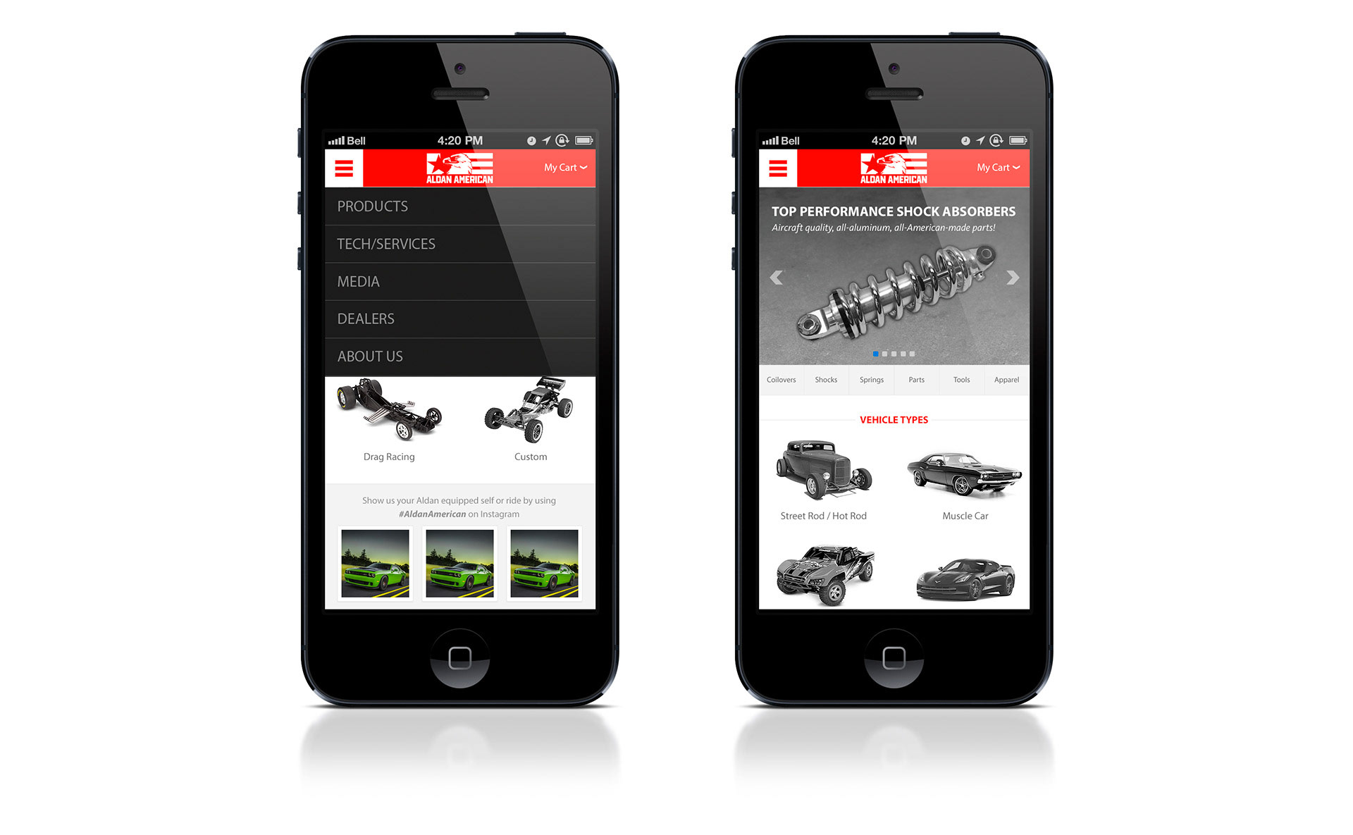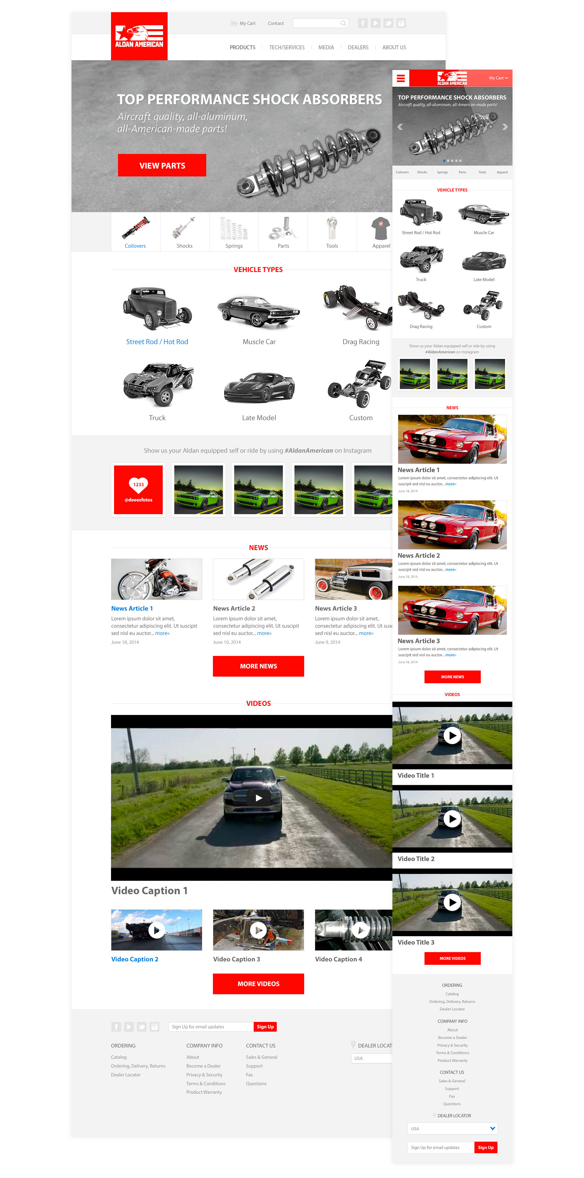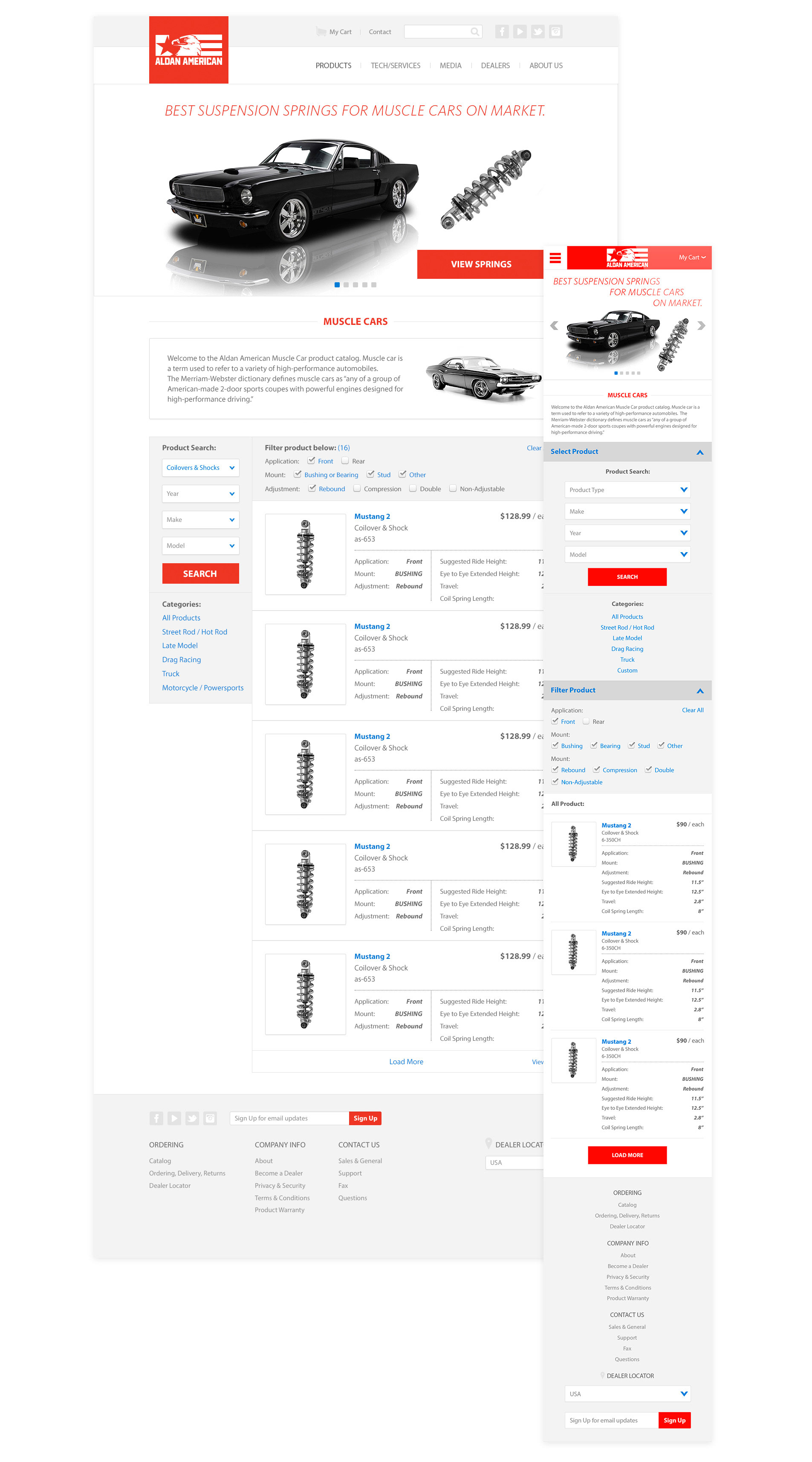 The website if grid-based and fully responsive, allowing users to buy parts online via desktop pr smartphones.